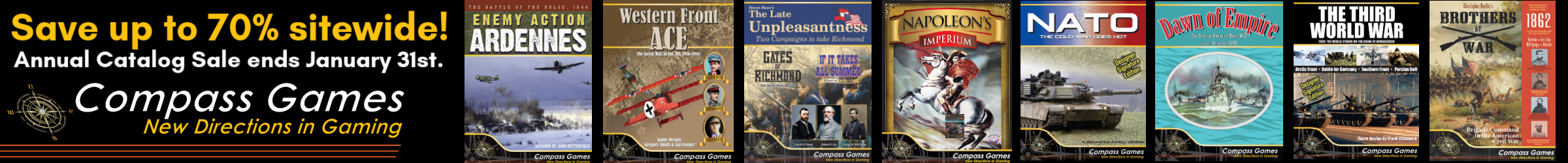 Save up to 70% sitewide! Annual Catalog Sale ends January 31st at Compass Games