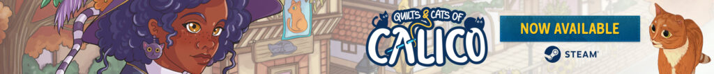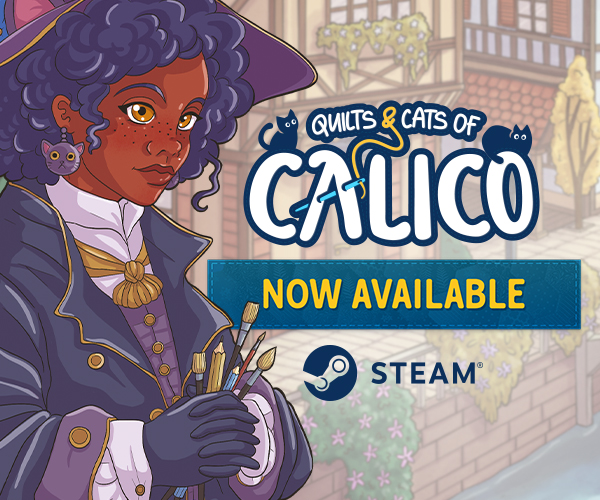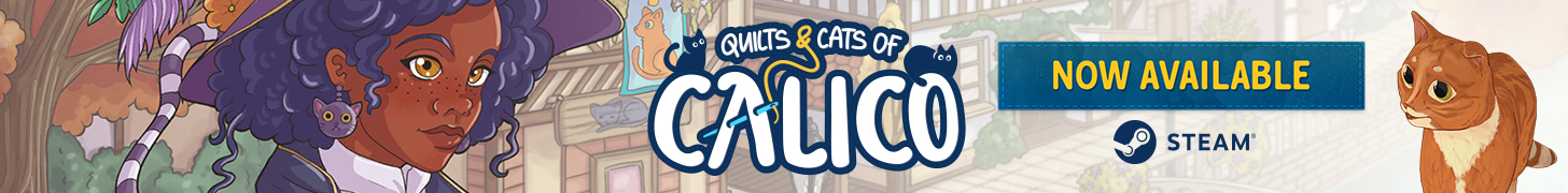 Landing URL https://store.steampowered.com/app/1993180/Quilts_and_Cats_of_Calico//?utm_campaign=premiera/utm_medium=bgg