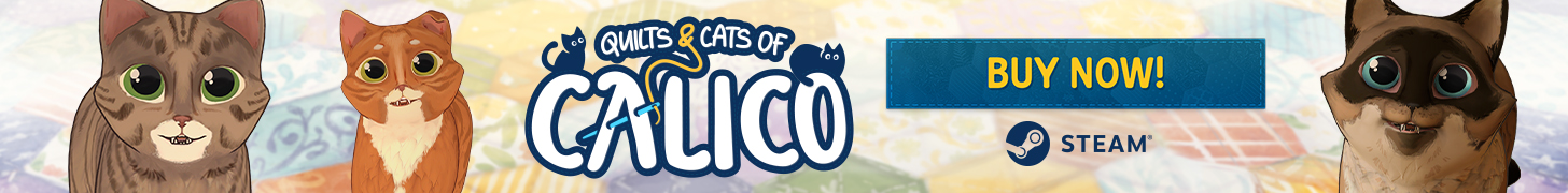 Landing URL https://store.steampowered.com/app/1993180/Quilts_and_Cats_of_Calico//?utm_campaign=premiera/utm_medium=bgg/utm_content=newsletter
