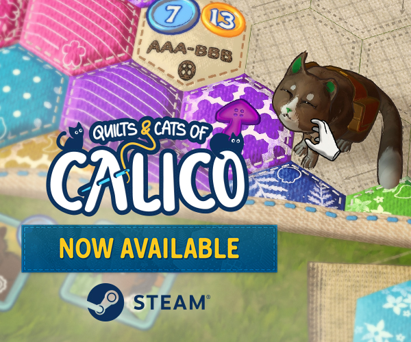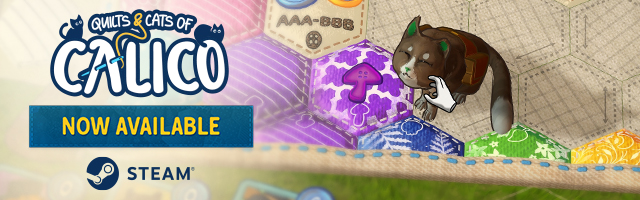 Text The beloved, feline-filled & award-winning puzzle board game of creating quilts from patches of fabric is now available on Steam! Play solo or with other players both offline and online in this cozy adaptation from Monster Couch - the studio that brought you Wingspan Digital. Besides everything you loved in the original, the digital adaptation offers: A story mode inspired by Studio Ghibli movies Challenges to complete Online and offline multiplayer Cozy music by Paweł Górniak A cat editor to create your own point-scoring furballs Hop on over to Steam to get the game, let the cats hop on your quilt and give them the pets they require!