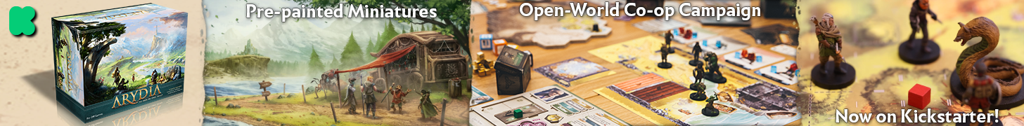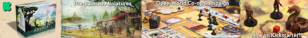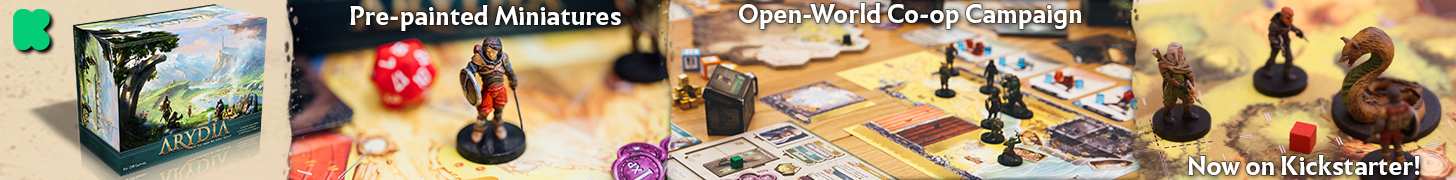 Description Arydia is an open world, campaign based, cooperative fantasy role playing board game for 1-4 players. The game of Arydia is built on four design pillars: Exploration, Progression, Combat, and Roleplaying.