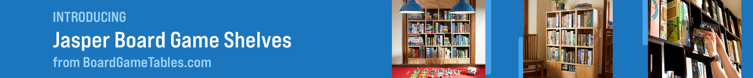 Description Introducing the Jasper Modular Board Games Shelves from BoardGameTables.com. They're made with modularity in mind, so you can configure the shape and features to perfectly fit your collection. Featuring solid wood and premium grade cabinet hardware, they're designed to level up your home and last a lifetime.