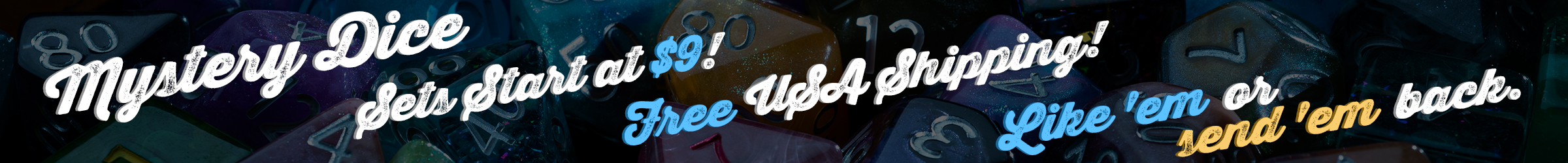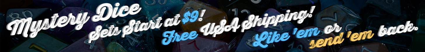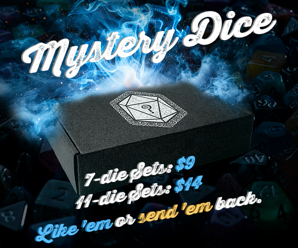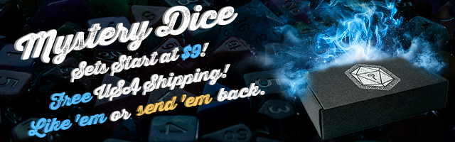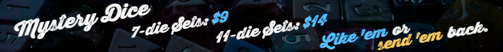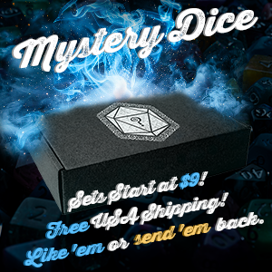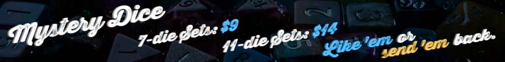 Text Mystery Dice 3.0 returns with the biggest, most fun, and Weirdest campaign yet! Featuring choice of: 7-die sets, 11-die sets, or “Weird Stuff”. But we’re not going to tell you what you get. You find out when you open the box! Pledge today for only $9!