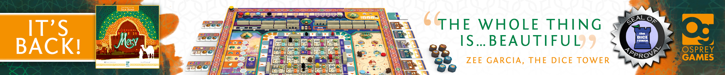 Campaign is a relaunch to promote the restock of Merv: The Heart of the Silk Road. Aiming at enfranchised euro gamers across US/Canada/UK/EU.
