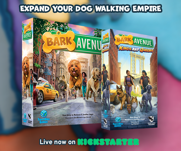 | Description | Expand your empire to the five boroughs of New York in Bark Avenue: Kings and Queens. The most thematic dog-walking board game returns to Kickstarter with a reprint and expansion adding double-dog cards, asymmetric gear cards, and a competitive worker placement bonus collection mechanism. Leash up and hit the streets! |