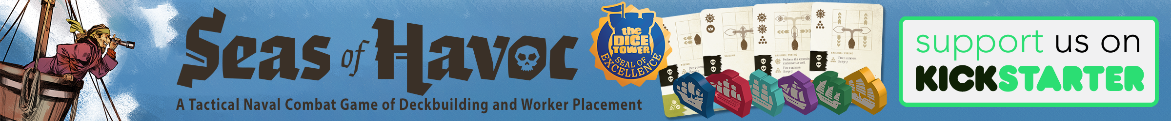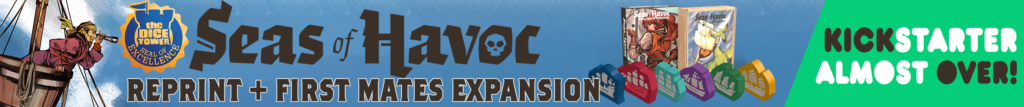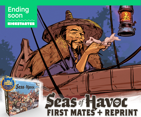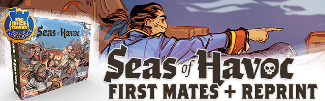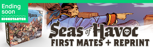 | Description | Yarr Matey! Don't miss out on the reprint and expansion to the award-winning worker placement and deckbuilding game, Seas of Havoc on Kickstarter. Rule the Seven Seas in this Tactical Naval Skirmish Game and be sure to grab the new First Mates expansion which adds a ton of modules and variability to the base game. |