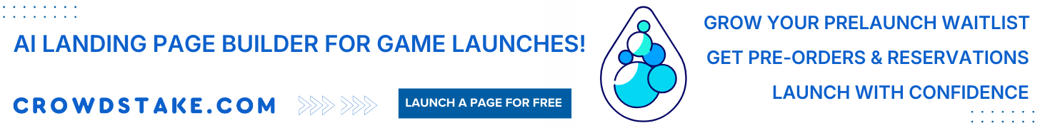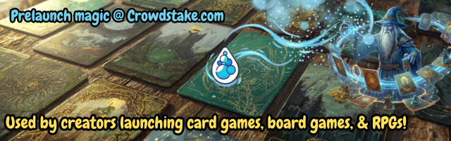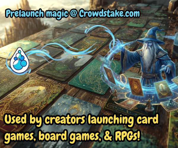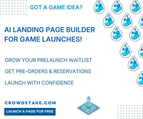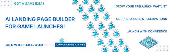 | Text | Make your next game launch count. Crowdstake helps tabletop creators build stunning prelaunch pages that grow your email list, and collect early preorders. No code. No guesswork. Just real players and real demand joining you before you launch a crowdfunding campaign. Build your prelaunch page for free at crowdstake.com/boardgames |