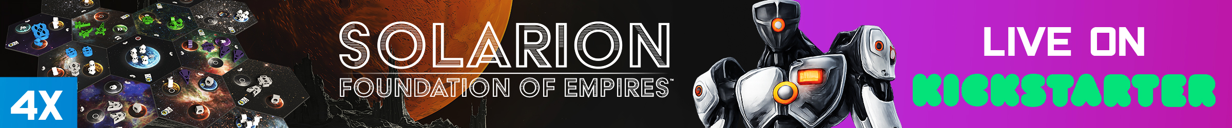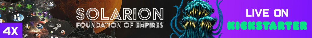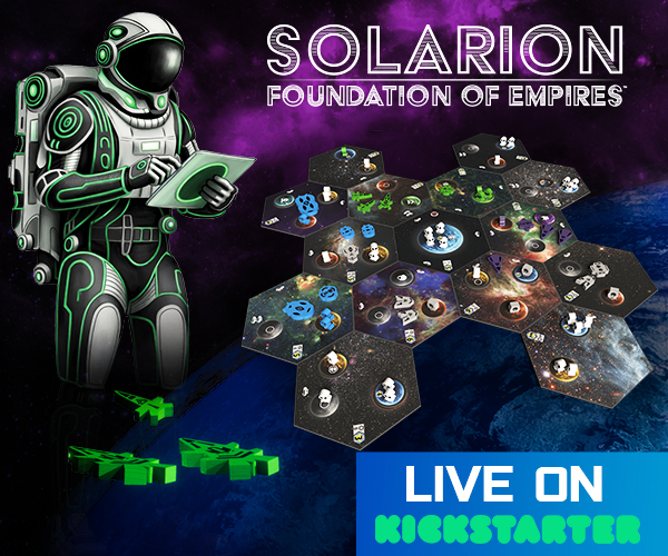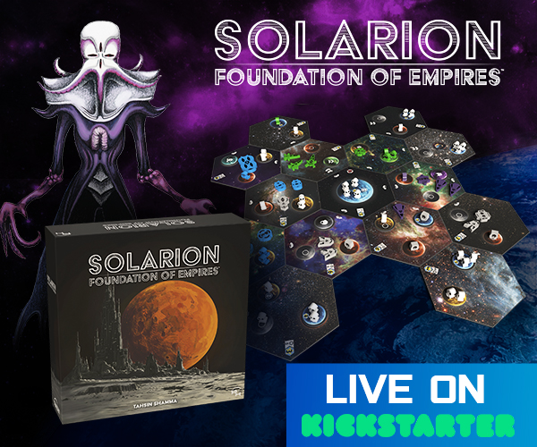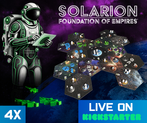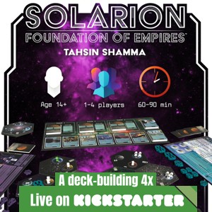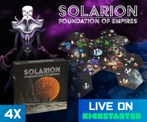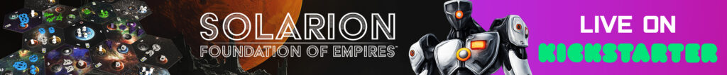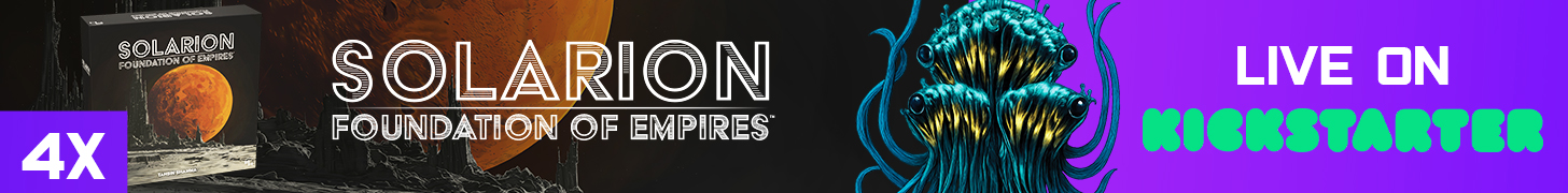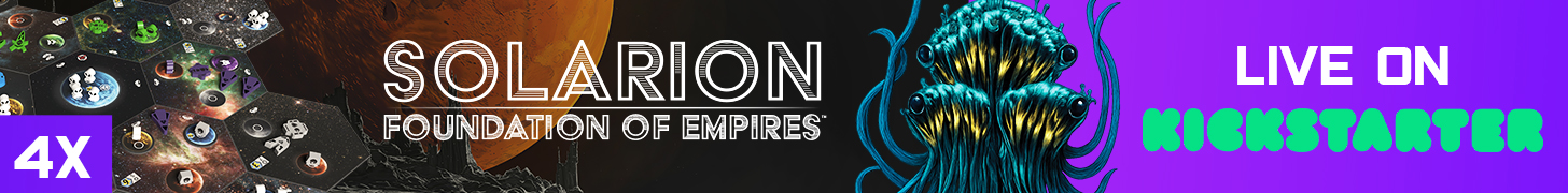 | Description | Solarion is a 1-4 player 4x deck builder with a dynamic card market and streamlined rules. Players will use their empire's technology and strategies to produce resources, position their fleets, attack their opponents, and establish presence. Players win by accumulating Victory Points (VP) across three scoring phases. |