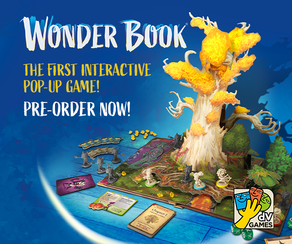 Join tomorrow’s Wonder Friday and take advantage of the discounted pre-order of Wonder Book, the first interactive pop-up game. You’ll also get the exclusive Wyrm’s dice set, plus two promo cards! Wonder Book is a cooperative, narrative-driven game divided into 6 unique scenarios; the pop-up game board is filled with eye-popping hidden 3D elements which will interact with the miniatures, making players feel like they’re walking for real through the lights and shadows of the wondrous realm of Oniria. The first print run of Wonder Book seems destined to run out quickly; Wonder Friday is the only opportunity to grab this game at a special price! |