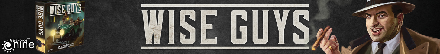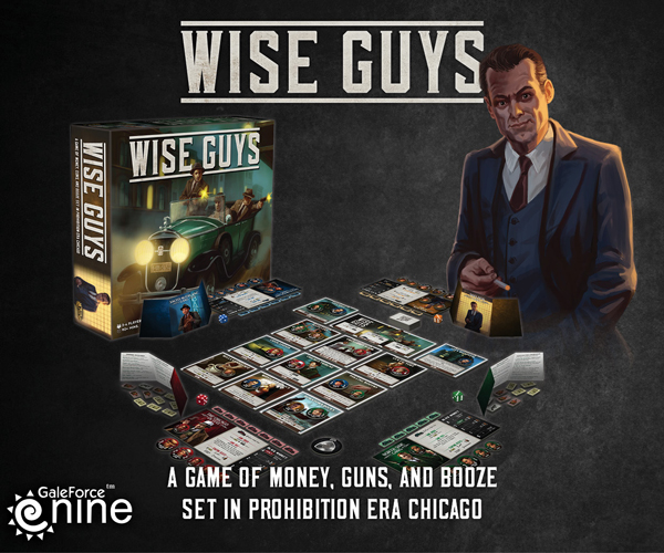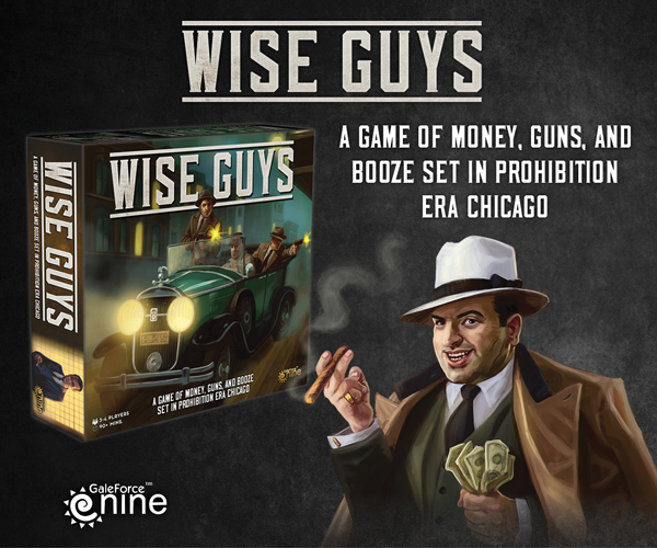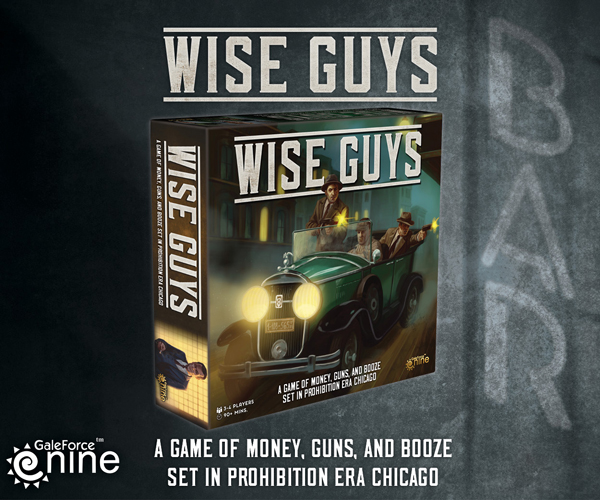 Text Wise Guys, from Gale Force Nine, is a quick to learn, cut throat, area control board game where you play as one of four rival gangs seeking to strike it rich as “Rum Runners” on the rough streets of Chicago at the height of the roaring 20’s. Each turn players wheel, deal, talk and fight to control locations where they buy and sell alcohol, help politicians get elected and get help in return or double-cross rival gangs. Players roll to choose their gang, then set themselves up with a respectable front of neighbourhood business men and their associates.. Pre-Order today & In stores March 26th