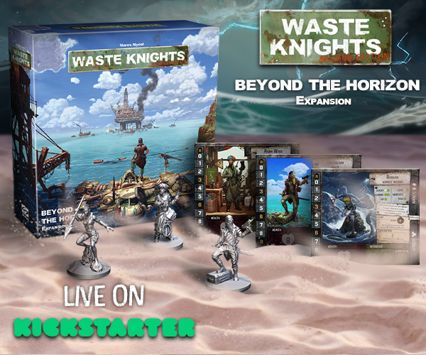 | Text | Beyond the Horizon is a huge expansion for Waste Knights: Second Edition, a best-selling game of adventure and survival set in post-apocalyptic Australia. It is time for you and your friends to leave the scorched continent behind, charter a ship and sail out to the toxic seas in search of great adventures and treasures from the days past. Play as one of new Knights ready to tackle any challenge, avoid dangers from sea cards, search for fresh water, equip new gear, and play a completely new Sandbox Game Mode for unprecedented freedom. Finally, discover the secrets of islands around Australia and learn how the Apocalypse changed the world. |