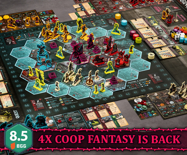 | Description | 4X CO-OP FANTASY IS BACK! The first fully cooperative 4X board game for 1-4 players set in a grimdark fantasy universe is coming back to Gamefound. ★ Get the new Expansion or the complete content from our first Kickstarter. ★ English and Deutsch! ★ This won't be available in retail - now is your only chance to get it! |
