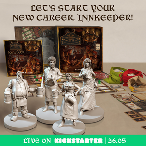 2-4 players, 90-120 min, limitless fun guaranteed! Kickstarter exclusive where you can enjoy a number of collector’s items with the premium Innkeeper’s edition – back the project till June 23rd! |